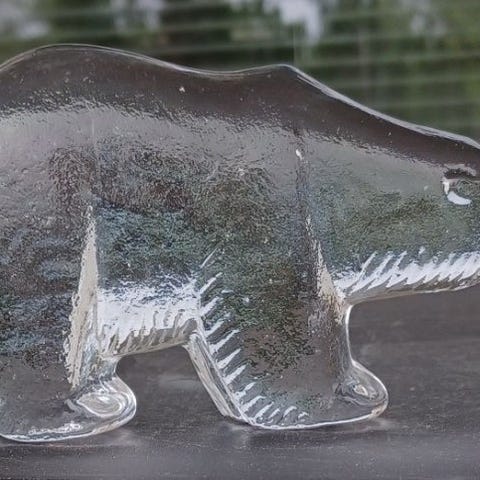 Dog en lille streg i glasuren ved halsen, ikke ret synligt, når den står.