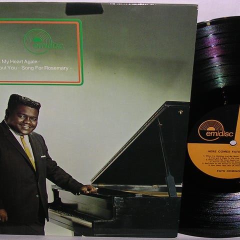 Fats Domino - Fats On Fire vinylplade i sort farve. Indeholder musikoptagelser fra Domino. Passer til afspilning på standard pladespillere. Made in USA