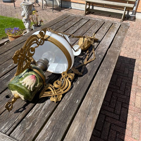 Loftlampe, Art Nouveau/majolika/konverteret olielampe