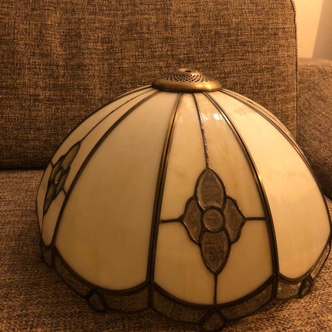 19 cm i diameter hvor bredest, åbning 13,3 cm i diameter, 20 cm høj uden fatning.