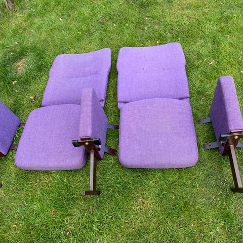 Fra en original biograf. Vippesæder med god komfort. Lige til drengeværelset eller mandens hobbyrum. Monteret på træplade for god stabilitet.
