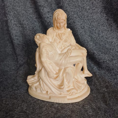 Ca. 30 cm høj, på marmorlignende sokkel.