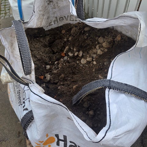 GRATIS! En halv bigbag med ren Muldjord blandet med 0-32mm sten. Den står på palle.
