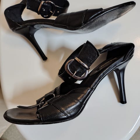 Sandaler/Stiletter str. 40, med stålkæde til omkring ankelen, brugte men fine til prisen, brugsspor kan forekomme.