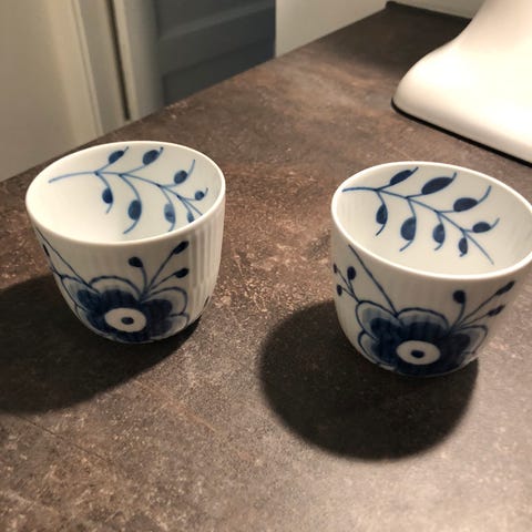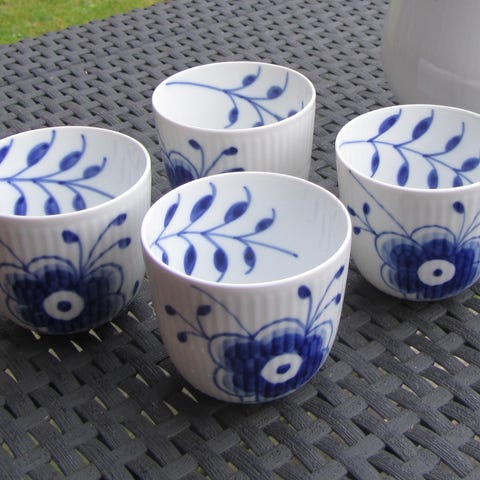 4 stk Royal Copenhagen fyrfadsstager/små skåle, Blå Mega Riflet.