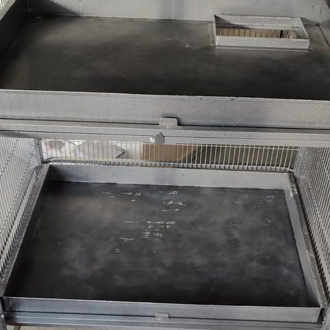 Reol med 16 ungdyrs rum sandkasser drikkeventiler 5l vandbeholder