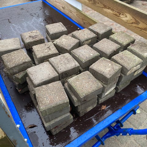 Grå cirkelsten i lys Beton 5 cm høje / herregårdssten? / Holmegårdssten?