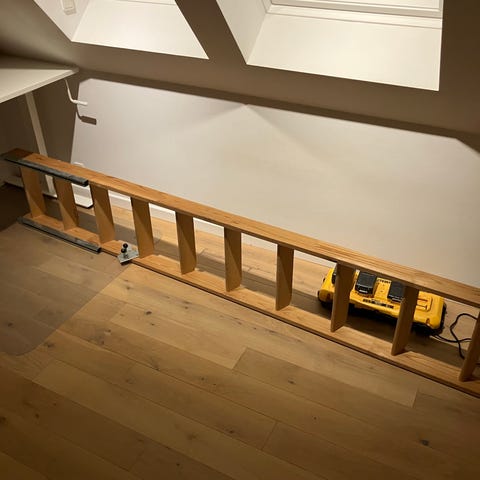 To år gammel, men brugt meget lidt, da hemsen stort set ikke er blevet brugt. Glidebeslagene er aldrig taget i brug.