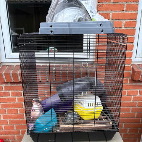 Andet, b: 77 d: 48 h: 35, Intakt trådbur med glasbund sælges med meget tilbehør .