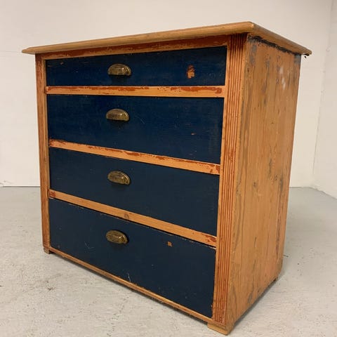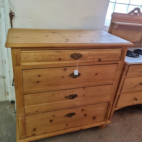 Fin gammel kommode i fyr med skuffer og fine messing greb.