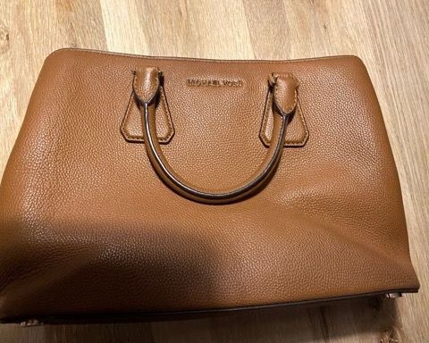 Michael Kors håndtaske i varmt orange skind, brugt få gange, står som ny, ny pris 1600kr