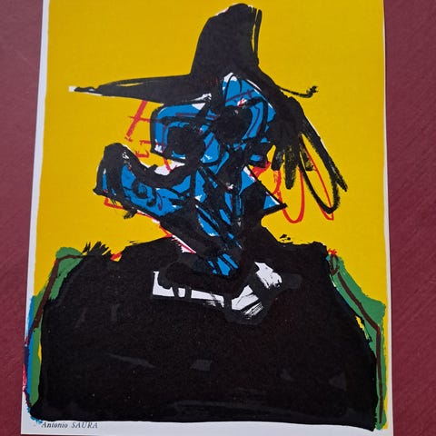 litografi af den spanske kunstner og forfatter Antonio Saura (1930-1998). Han var en af de mest fremtrædende efterkrigstidsmalere i Spanien, hvis arbejde har haft stor indflydelse på flere generationer af kunstnere.
