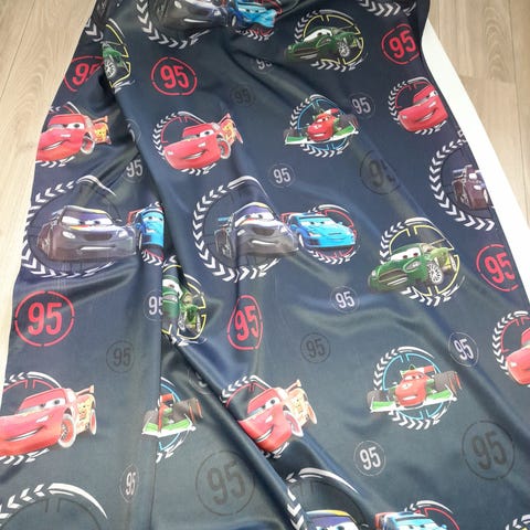 Hyggelige lysdæmpende gardiner til børneværelset med arbejdesbiler, som motiv.