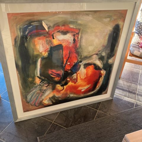 Maleri ecaustic voksmaling 19x25 cm i glas og metalramme