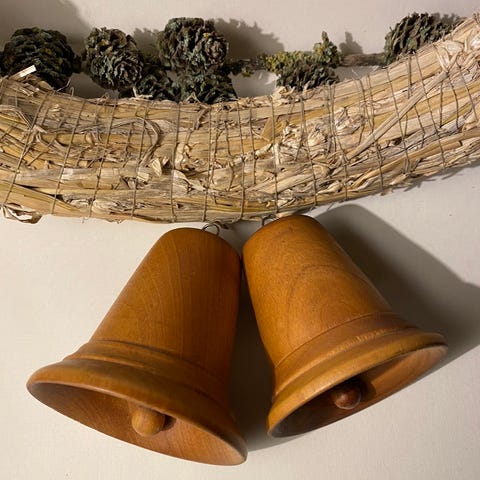 juleklokker i messing, gamle glaskugler og julepynt fra Daells Varehus.