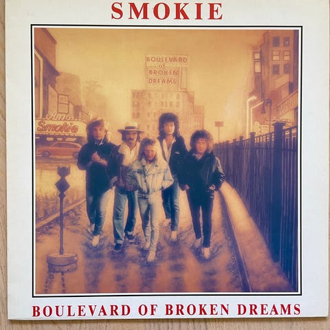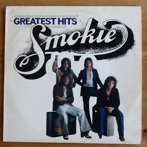 Smokie Greatest Hits vinylplade med sort plade og hvidt cover. Indeholder en samling af bandets mest kendte sange. Udgivet af RAK Records. Passer til afspilning på standard pladespillere.