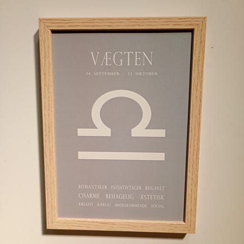 Billedtryk i kvalitets træramme med glas fra Hoei. Egelook. Kan både stå og hænge.