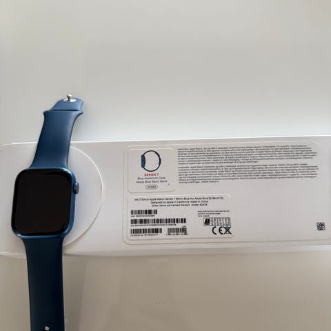 Apple Watch 7, GPS, 45mm, rød, almindelig brugsspor på rem, ingen ridser på uret