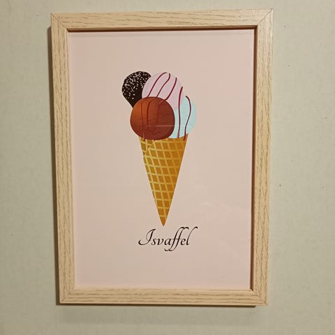 Gl. dags isvaffel - Tryk i sort ramme - 15x21 cm