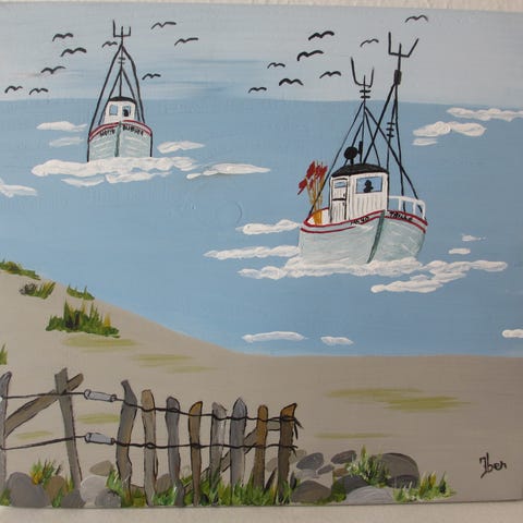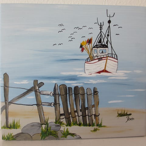 Acryl-malerier på træklods, str. 19 x 18 x 4 cm, malet på alle flader.
