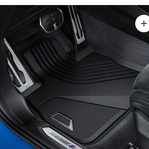 BMW gummimåtter sæt designet til bil, lavet af holdbart gummi. Måtterne er sorte med en rød kant og har formtilpassede kanter for optimal pasform. Sættet inkluderer måtter til både for- og bagdele af bilen, hvilket sikrer beskyttelse mod snavs og fugt.