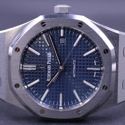 Audemars Piguet Royal Oak Lady kombinerer klassisk elegance med sporty luksus. Den 33 mm store stålkasse er prydet med en diamantbesat ottekantet krans og en sort skive med “Grande Tapisserie”-mønster. Uret leveres på en sort læderrem og er det perfekte valg til den stilbevidste kvinde, der ønsker eksklusivitet i et tidløst design.