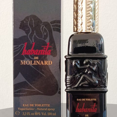 Smuk og sjælden vintage Habanita i den ikoniske sorte Lalique-flakon, 100 ml EDT med original æske. Dette er en tidlig 90’er batch bevaret med den oprindelige formel, inkl. den dybe egemos, som senere blev fjernet i nyere udgaver.