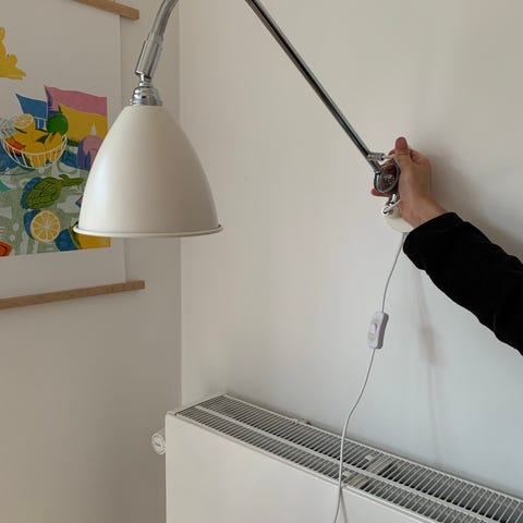 To flotte hvide Bestlite BTC væglamper, med få brugsspor. Ingen buler, kun få mindre mærker.