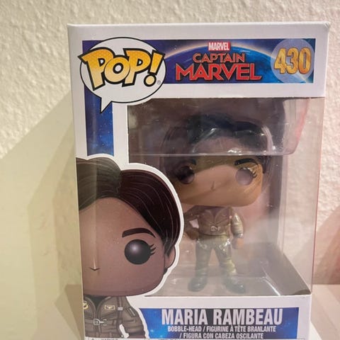Funko Pop Marvel Captain Marvel figur med detaljeret dragt i sort og grøn. Figuren har blondt hår og står på en rund base. Materiale: vinyl. Egnet til samling eller dekoration.