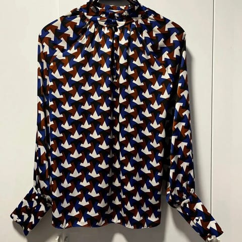 Rigtig flot bluse - kun brugt en enkelt gang. Den har ærmer med knap forneden og har en flot skæring i ryggen og finesse på brystet. Se fotos.