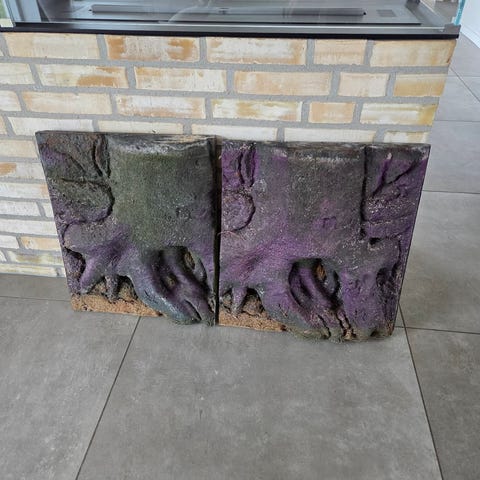 Diverse rester fra Juwel Stone Clay baggrund. Kan bruges til at dække pumpe mm i dit akvarium.