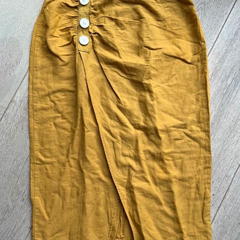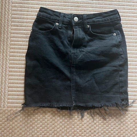 Kort ternet nederdel med slå-om effekt og et spænde i siden.