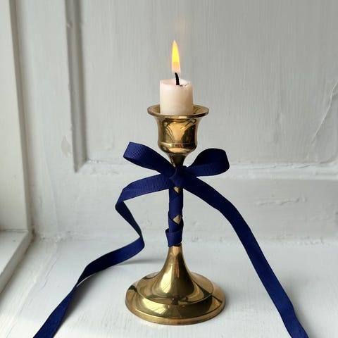 Gammel, massiv messingstage til to alm. lys