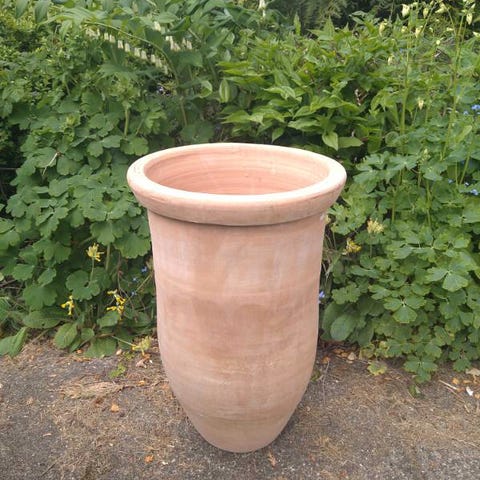 teracotta skål med reb håndtag. Skålen er rund, lavet af keramik med en naturlig beige farve. Den har to robuste reb håndtag, der gør den nem at bære. Skålen kan anvendes til opbevaring eller som dekorativt element.
