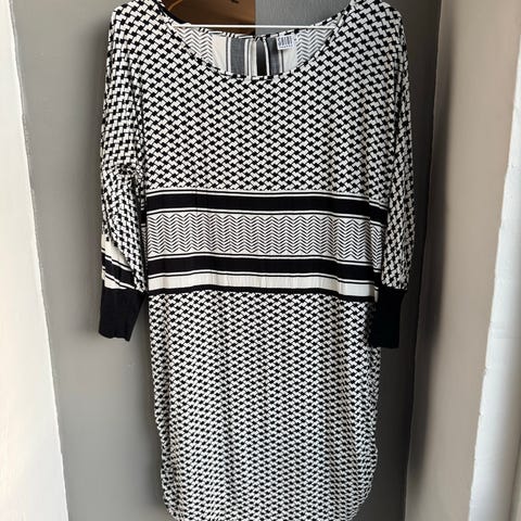 Saint Tropez Hverdagskjole i sort farve, størrelse M. Kjolen har et mønstret design og er velegnet til hverdagsbrug.