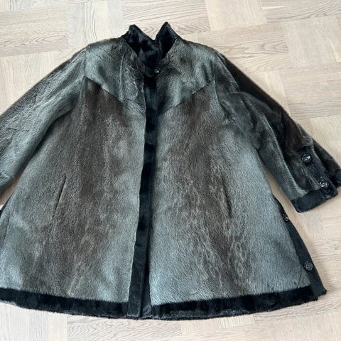 Ægte sælskinspels, 3/4 lang, A-snit model, størrelse 50-52.