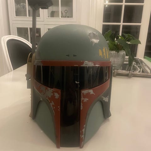 Omega med udskifteligt hoved og tilbehør, herunder armbrøst. Figuren er klædt i blå og grå tøj med røde detaljer. Tilbehøret består af et armbrøst. Har kun stået til udstilling, og kummer fra røg og dyrefrit hjem. skrive gerne for flere billeder.
