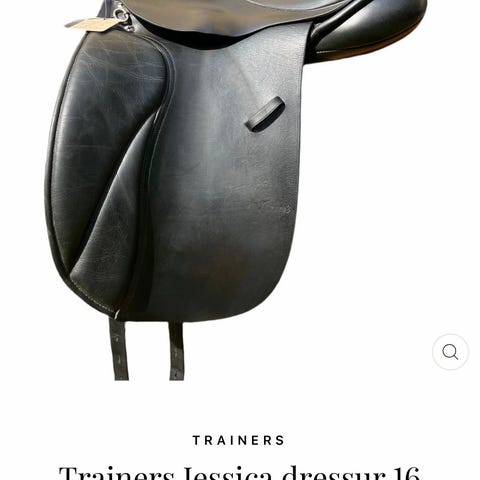 Trainers saddel 15 3/4 toppe, kort anlægsflde. Om stoppet for 1 år siden, aldrig brugt herefter men har stået tør og varmt. Efter omstopning er der kommet to huller på knæpuder ( se billeder) som kan laves.