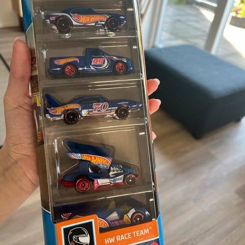Kickstart din samling af Hot Wheels®-biler med dette sæt med fem meget detaljerede køretøjer, som allerede står klar ved startlinjen. Med dette Hot Wheels® 5-Car-sæt får du fem gange så meget action – perfekt til bilentusiaster i alle aldre. Sættene er med deres seje, strømlinede temaer, autentiske detaljer og iøjnefaldende udsmykninger den perfekte gave til både børn og samlere. Du kan vælge blandt temaer som X-Raycers™, Track Builder, HW Hot Trucks™, HW Exotics™, Nightburnerz™, Snow Stormers og mange flere. Hvert sæt sælges separat og så længe lager haves. Farver og mønstre kan afvige fra det viste.