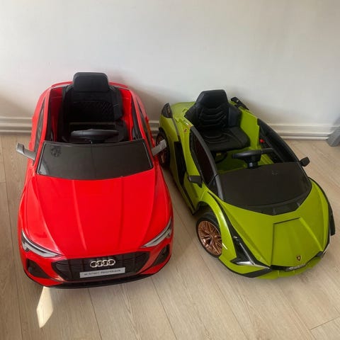 Den nye farveteknologi giver bilens orange lak en ekstra skinnende finish, der får den til at ligne en ægte luksusbil. Dørene kan åbnes opad som på den originale Aventador, og interiøret er udstyret med et eksklusivt PU-lædersæde for maksimal komfort.