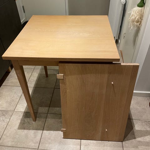 Spisebordet har god plads til 4 personer i dagligdagen og kan nemt rumme op til 6 personer, når bordenderne tages i brug. Det gør bordet ideelt til både hverdagsbrug og hyggelige middage med gæster.