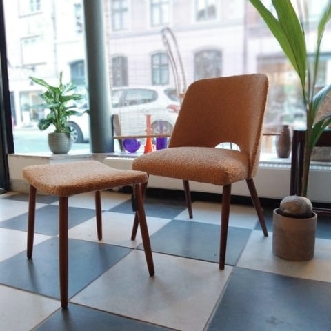 Elegant og klassisk loungestol som med sin kompakte størrelse kan passe ind mange steder. Stolen er polstret med et lækkert og fyldigt møbelstof af høj kvalitet og har en rigtig behagelig siddekomfort.