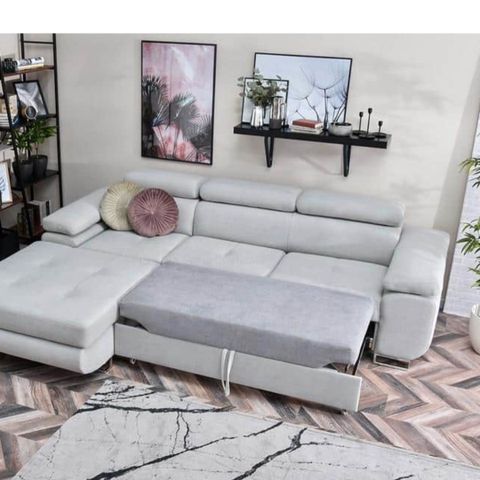 * Gode mål: Sofaen måler 270 cm i bredden og 129 cm i dybden, sengen måler 240 cm i længden og 135 cm i bredden.