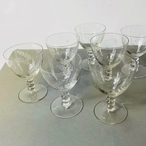 11 smukke ciselerede rødvins eller hvidvinsglas - et er desværre blevet tabt på gulvet
