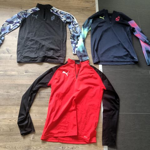 Puma sportstrøje til børn i størrelse 152. Trøjen er grøn med mørkere grønne detaljer på skuldre og ærmer. Fremstillet i åndbart materiale med DryCell teknologi, der hjælper med at holde huden tør under fysisk aktivitet. Velegnet til forskellige sportsaktiviteter.