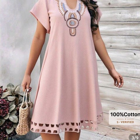 Fejlkøb: sød kjole til kvinde med kurver. Størrelse 4 xl. Jeg kan passe den og jeg bruger str. 50-52 men kan ikke gå med polyester.
