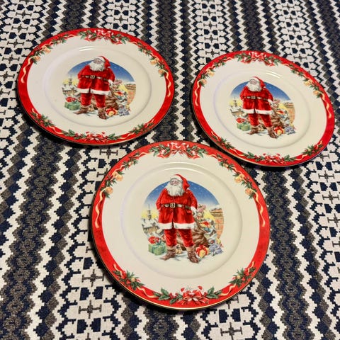 Smuk Firkløveren kageopsats medJulemandsmotiv sælges.