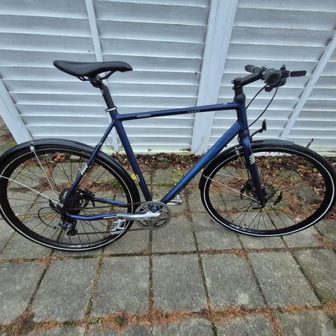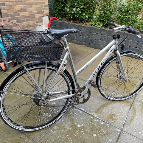MBK Hybridcykel til unisex, stelstørrelse 53 cm, i grå farve. Cyklen har en robust ramme og er egnet til både bykørsel og let terræn. Udstyret med navgear og skivebremser, hvilket sikrer en jævn og sikker kørsel. Fælger og dæk er designet til komfort og holdbarhed. 7 invendig gear