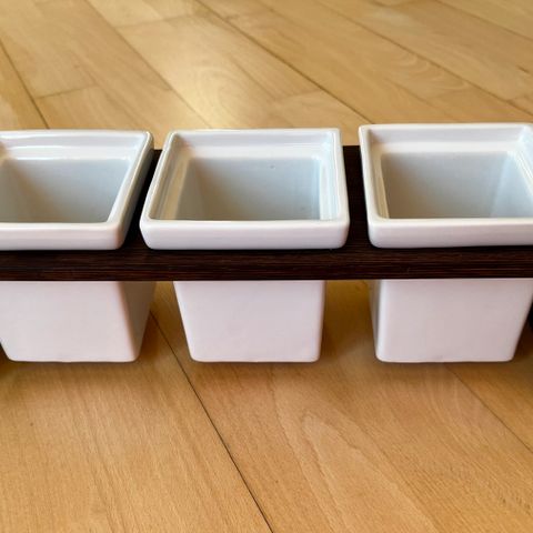 Rigtig fin krydderiholder, træet er nyolieret og alle krukker er intakte