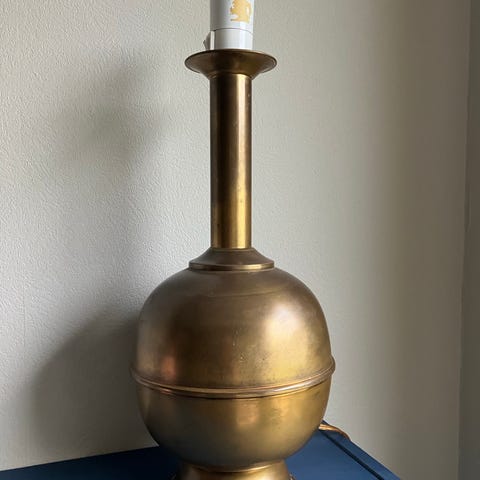 Lampe, Lille meget sød gammel messing bordlampe 25cm høj.